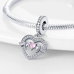 Angel Wing Heart Pandora Charm | Pink Crystal Love Dangle | Silver Guardian Memorial Gift