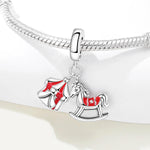 Circus Tent Pandora Charm | Rocking Horse Carousel | Red Enamel Dangle | Carnival Fun Gift