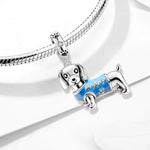 Dachshund Pandora Charm | Blue Shirt Sausage Dog | 925 Sterling Silver Puppy Pendant