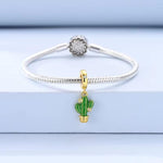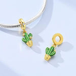 Gold Cactus Pandora Charm | Green Enamel Saguaro Dangle Plant Jewelry | Succulent Lover Gift