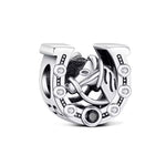 Fits Pandora Charm bracelets and necklaces, this detailed bead charm combines the love of horses with a classic symbol of good fortune. Expertly crafted from 925 sterling silver, it features a spirited horse head framed...