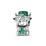Irish Highland Cow Pandora Charm 925 Silver | St Patricks Day Gift | Shamrock Clover