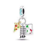 Italy Pandora Charm 925 Silver | Pisa Pizza Map Jewelry | Italian Souvenir Gift