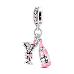 Pink Champagne Pandora Charm | Wine Bottle Glass Dangle | 21st Birthday Party Gift | Celebration Jewelry