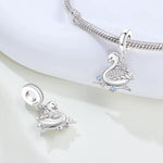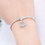Swan Pandora Charm | Elegant Silver Dangle | Crystal Bird | Blue Stars | Animal Lover Gift