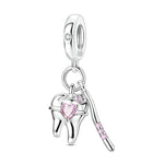 Tooth Pandora Charm | Dentist Toothbrush Dangle | Dental Hygienist Gift | Assistant Graduation Jewelry
