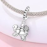 Tortoise Mom Baby Pandora Charm | Sparkle Shell Turtle Dangle | Silver Family Animal Gift