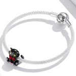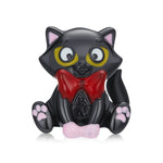 Celebrate the playful charm of cats with the Adorable Black Cat with Red Bow Dangle Charm by Letoton. Crafted from 925 sterling silver, this charming piece features a cute black cat with big yellow eyes, dressed in a bright red bowtie. Its joyful expression and vibrant colors make it a heartwarming addition to your collection, perfect for any cat lover.