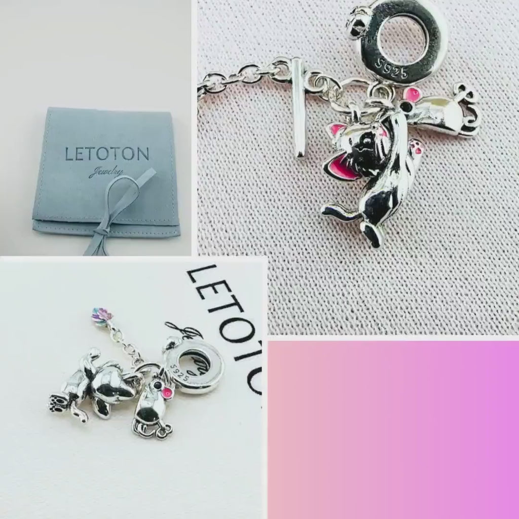 The bail is adorned with a paw print set with a pink crystal, adding a sparkle of love. Whether you are a "Cat Mom" to a crazy kitten or simply love the playful nature of felines, this charm brings a scene of fun and happiness to your wrist.