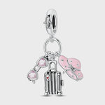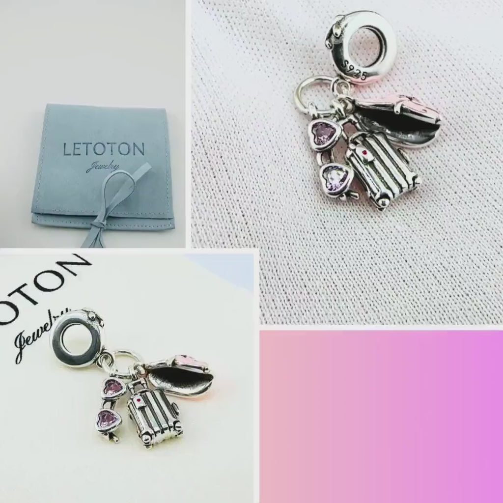 Travel Pandora Charm | Pink Sunglasses Suitcase Hat | Silver Dangle | Vacation Gift | Summer Trip Souvenir