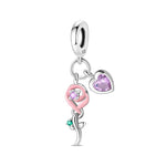 Celebrate love in its most timeless form with the Eternal Rose & Heart Dangle Charm by Letoton. Crafted from 925 sterling silver, this elegant design features a delicate pink enamel rose entwined with shimmering zircon accents, symbolizing beauty and devotion. A radiant heart-shaped gemstone dangles beside it, adding an extra touch of romance and charm.
