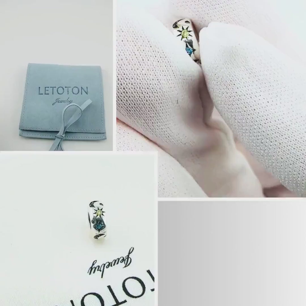 It features a radiant yellow crystal sun, a deep blue crescent moon, and sparkling light blue stars. This charm perfectly balances the energy of day and night. It serves as a beautiful reminder that "you are my sun, my moon, and all my stars," making it a romantic gift or a dreamy addition to a galaxy-themed bracelet.