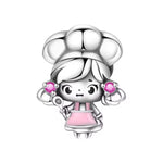 She is dressed in a cute pink enamel apron, and her hairstyle is accented with two sparkling pink cubic zirconia stones. Whether you are a professional pastry chef, a culinary school graduate, or someone who simply loves spending time in the kitchen, this charm says "Bon Appétit" with style.