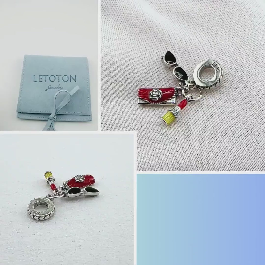 Bursting with vibrant color and personality, this charm captures the excitement of a shopping spree, a girls' night out, or getting ready for a special date. It is the perfect keepsake for makeup lovers, trendsetters, and anyone who believes that life is your runway.