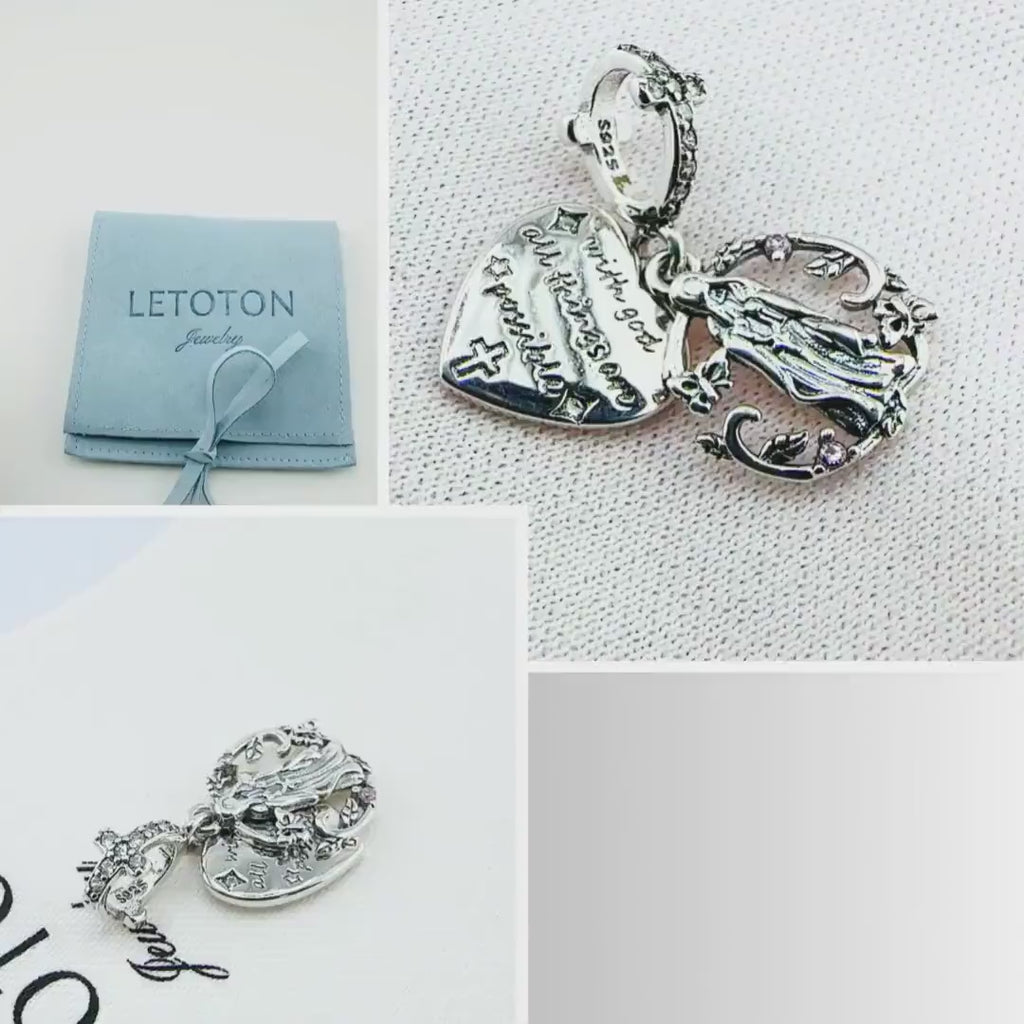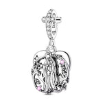 Virgin Mary Pandora Charm | Cross Heart Dangle | Silver Religious Jewelry | Baptism Confirmation Gift