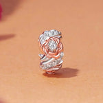 Embrace the beauty of nature with this enchanting floral charm. The delicate rose gold flower petals bloom gracefully, encircled by a band of sparkling crystals that add an elegant touch of brilliance. Crafted from 925 sterling silver with a luxurious rose gold finish, this design symbolizes growth and new beginnings, making it the perfect piece for anyone who appreciates timeless beauty.