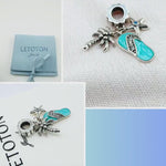 The sandal is the star of the show, finished with swirling teal enamel that mimics the ocean waves and a strap set with sparkling clear cubic zirconia. Whether you are remembering a family holiday, a honeymoon, or simply love the beach lifestyle, this charm keeps the summer vibes alive all year round.