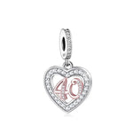 Honor a milestone filled with strength and beauty with the 40th Birthday Rose Gold Heart Dangle Charm by Letoton. This exquisite charm, crafted from 925 sterling silver, features a shimmering heart-shaped design adorned with pavé stones. The rose gold number 40 at its center embodies wisdom, grace, and a lifetime of memories. A dazzling bail completes the look, ensuring this charm remains a treasured piece for years to come.