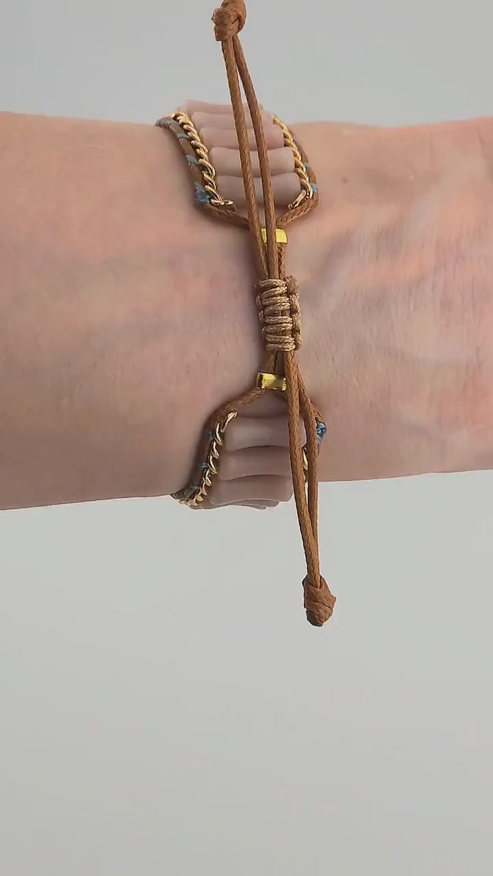 Our skilled makers have carefully woven these smooth, polished jade bars between durable tan cords, beautifully accented by a delicate gold-tone chain and subtle pops of blue thread for a unique and stylish touch. The intricate macrame work and adjustable pull-tie closure ensure the band is not only beautiful but also comfortable and secure for a perfect fit. This is the ideal accessory to elevate your Apple Watch from a tech piece to a sophisticated and meaningful piece of jewelry.