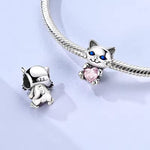 Cat Pandora Charm | Kitten Pink Heart | Blue Eyes Silver Bead | Pet Lover Gift Jewelry