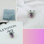 The kitty is holding a large, faceted pink heart-shaped stone, symbolizing the unconditional love we have for our furry friends. With its smiling face and tiny paws, this charm brings a touch of playful joy and warmth to your style, making it an ideal gift for a proud "Cat Mom."