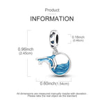 Dolphin Pandora Charm | Blue Ocean Wave Dangle | Silver Sea Life Animal | Marine Biology Gift