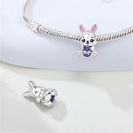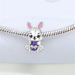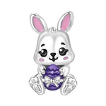 Easter Bunny Pandora Charm | Purple Egg Silver Bead | Rabbit Gift | Spring Jewelry