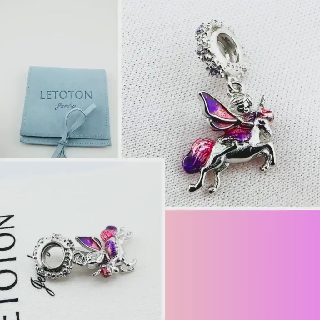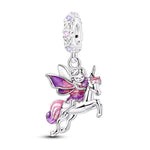 Fairy Unicorn Pandora Charm | Pink Purple Enamel Wings | Fantasy Magic Jewelry | Daughter Gift
