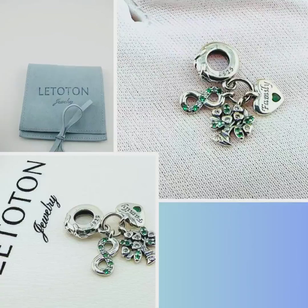 Family Tree Pandora Charm | Infinity Heart Dangle | Green Crystal | Silver Mom Gift | Ancestry Jewelry
