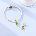 Gold Cactus Pandora Charm | Green Enamel Saguaro Dangle Plant Jewelry | Succulent Lover Gift