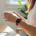 Handmade Red Jade Apple Watch Band: Bohemian Gemstone Strap for Stylish Wearable Tech Enthusiasts