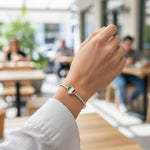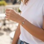 The surface is vibrantly painted with the green, white, and red enamel of the Italian flag. It's a stylish and patriotic memento of a trip to Rome or Venice, or a wonderful gift for someone with proud Italian heritage. This charm slides directly onto the bracelet for a seamless look.