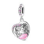 Mother Daughter Love Pandora Charm | Pink Heart Mom Kissing Child Dangle | Silver Mum Gift