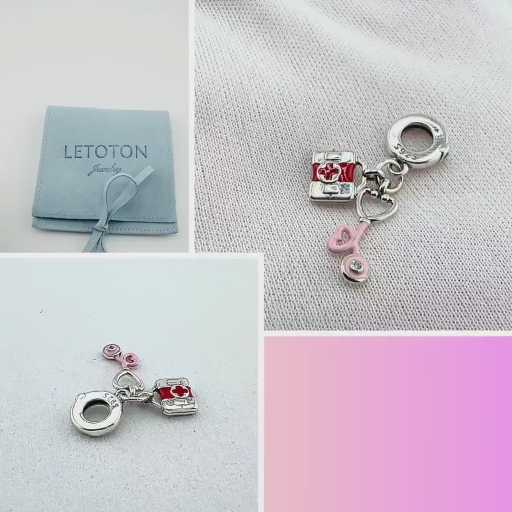 Nurse Doctor Pandora Charm | Medical Kit Stethoscope Heart | Pink Dangle | Healthcare Graduation Gift