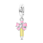 Pencil Pandora Charm | Pink Bow Heart Crystal | Teacher Student Gift | Silver School Dangle