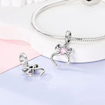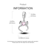 Ribbon Bow Pandora Charm | Pink Heart Crystal | Silver Gold Dangle | Coquette Love Gift