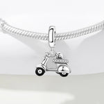 Scooter Pandora Charm | Retro Moped Dangle | Silver Italian Travel Gift | Crystal Motorbike Jewelry