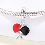 Table Tennis Pandora Charm | Red Black Paddle Bat | Ping Pong Sport Jewelry | Athlete Gift